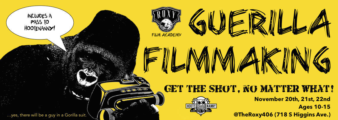 Guerilla filmmaking is the quickest, fastest, most on-the-fly style of filmmaking there is! Learn what you can and can’t get away with, how to be sneaky, and how to GET THE SHOT! Register for this three-part weekend class, and get a FREE Kids’ Pass to HOOTENANNY! (Kids take over the Roxy!)